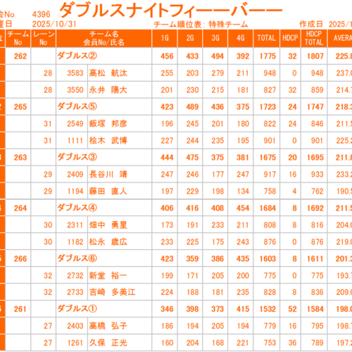 | 第4位 | 久保・高橋(弘)チーム | 1614P |