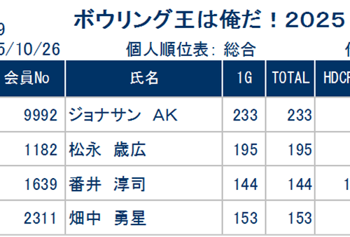 | コメント | 今年のボウリング王を決める戦い! 白熱の対戦がたくさんありました! |