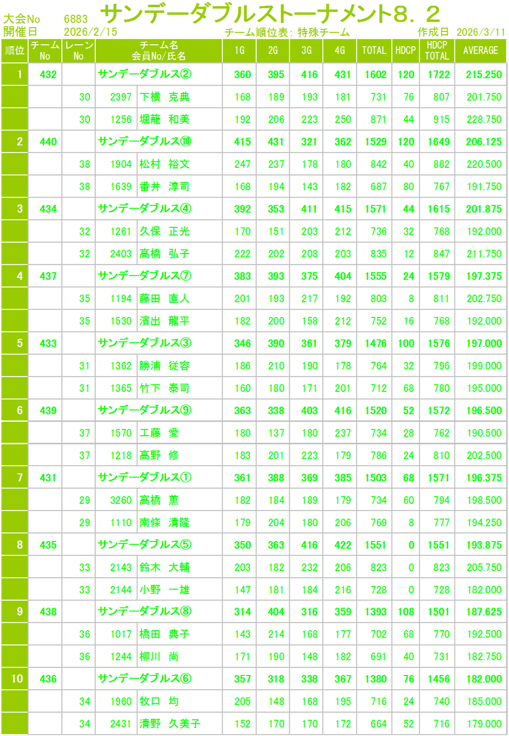 【サンデーダブルストーナメント】