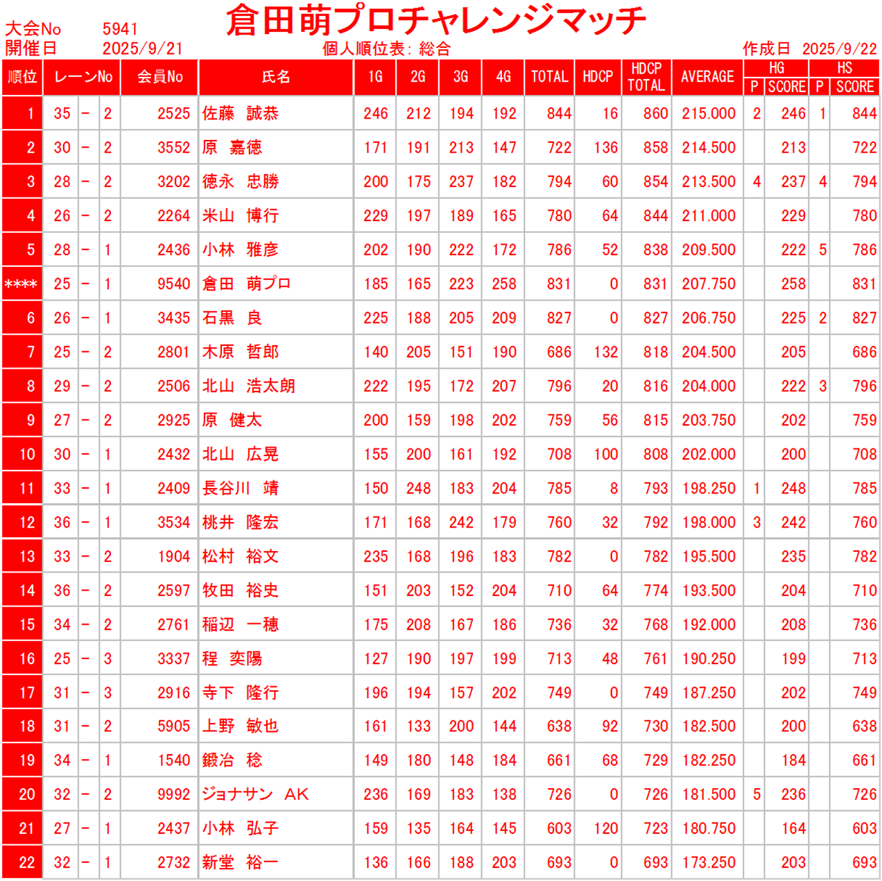 そして「大津欣也」さんが見事パーフェクトを達成されました!
