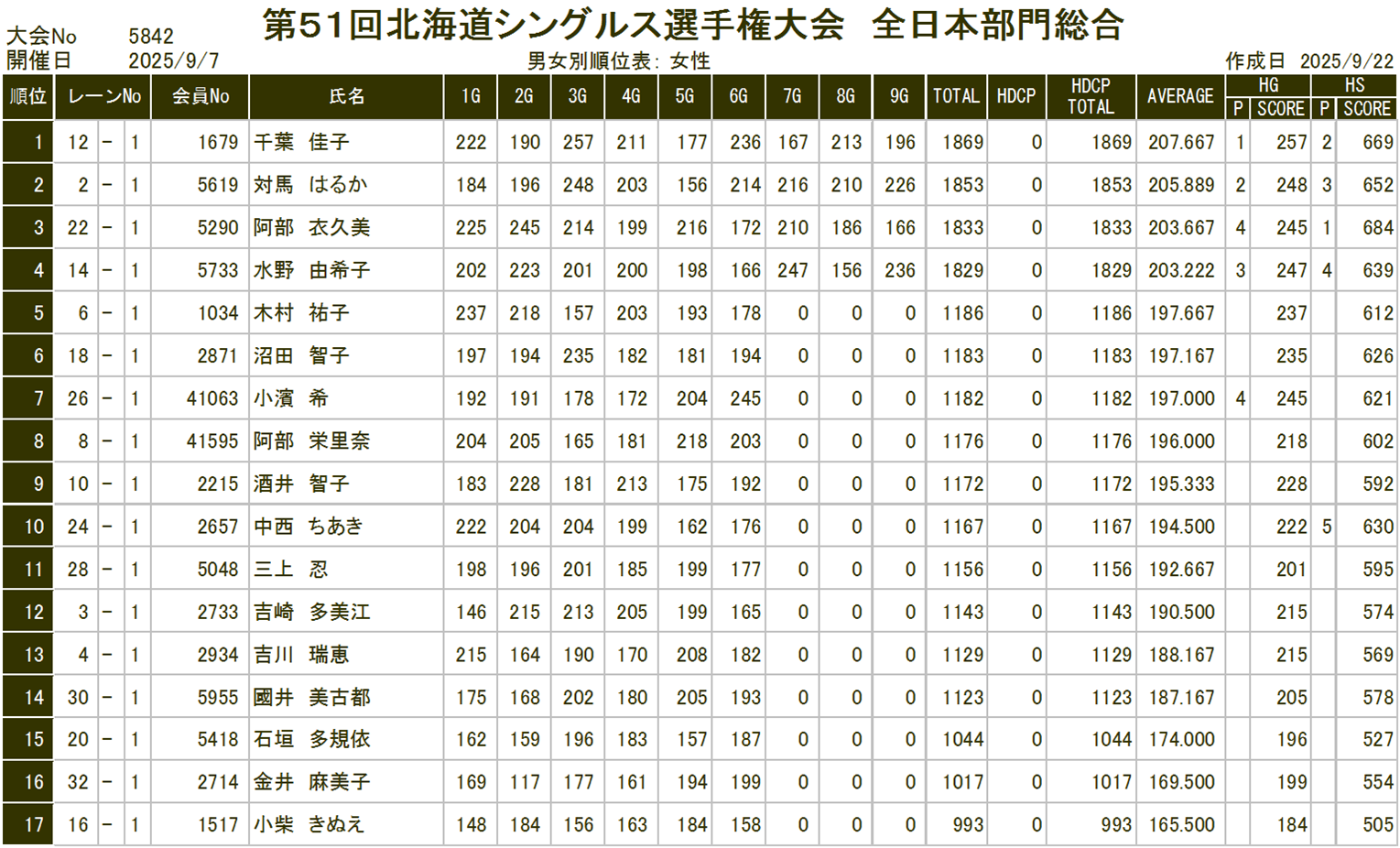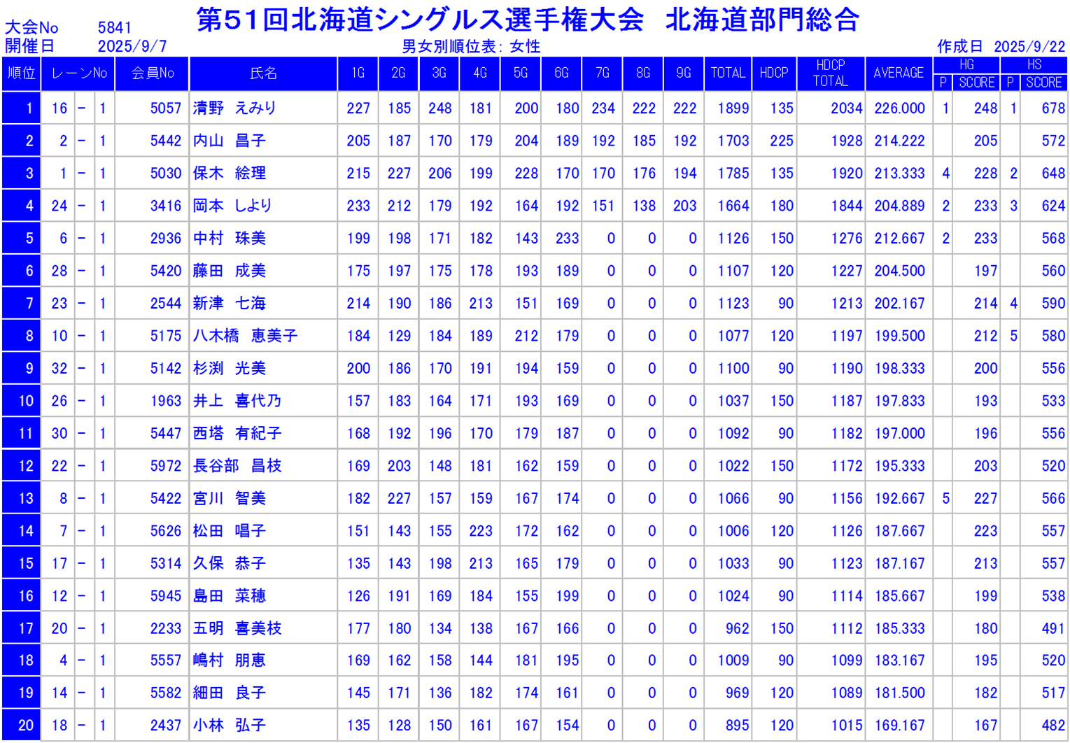 | 優 勝 | 堀籠 和美選手 | 956P |