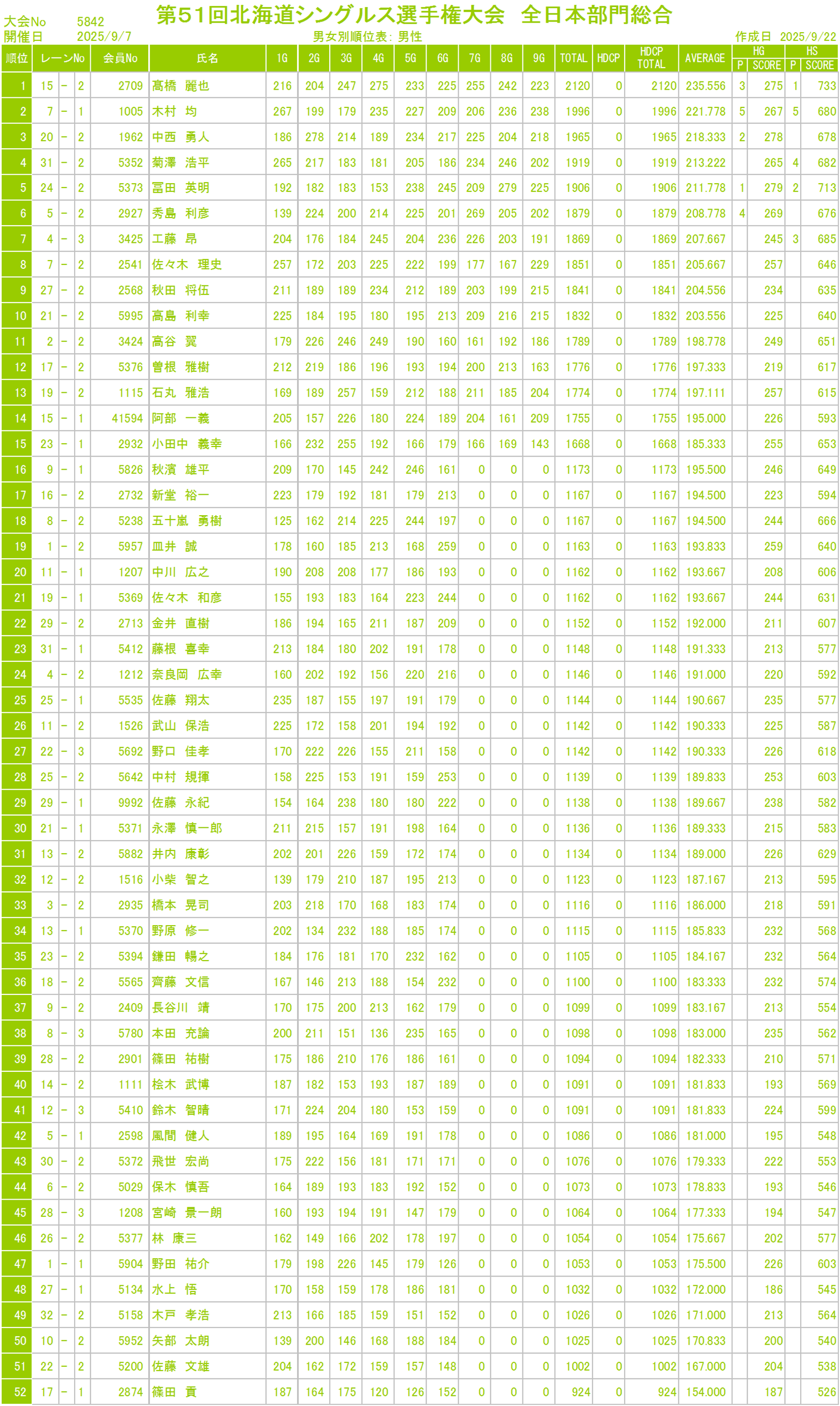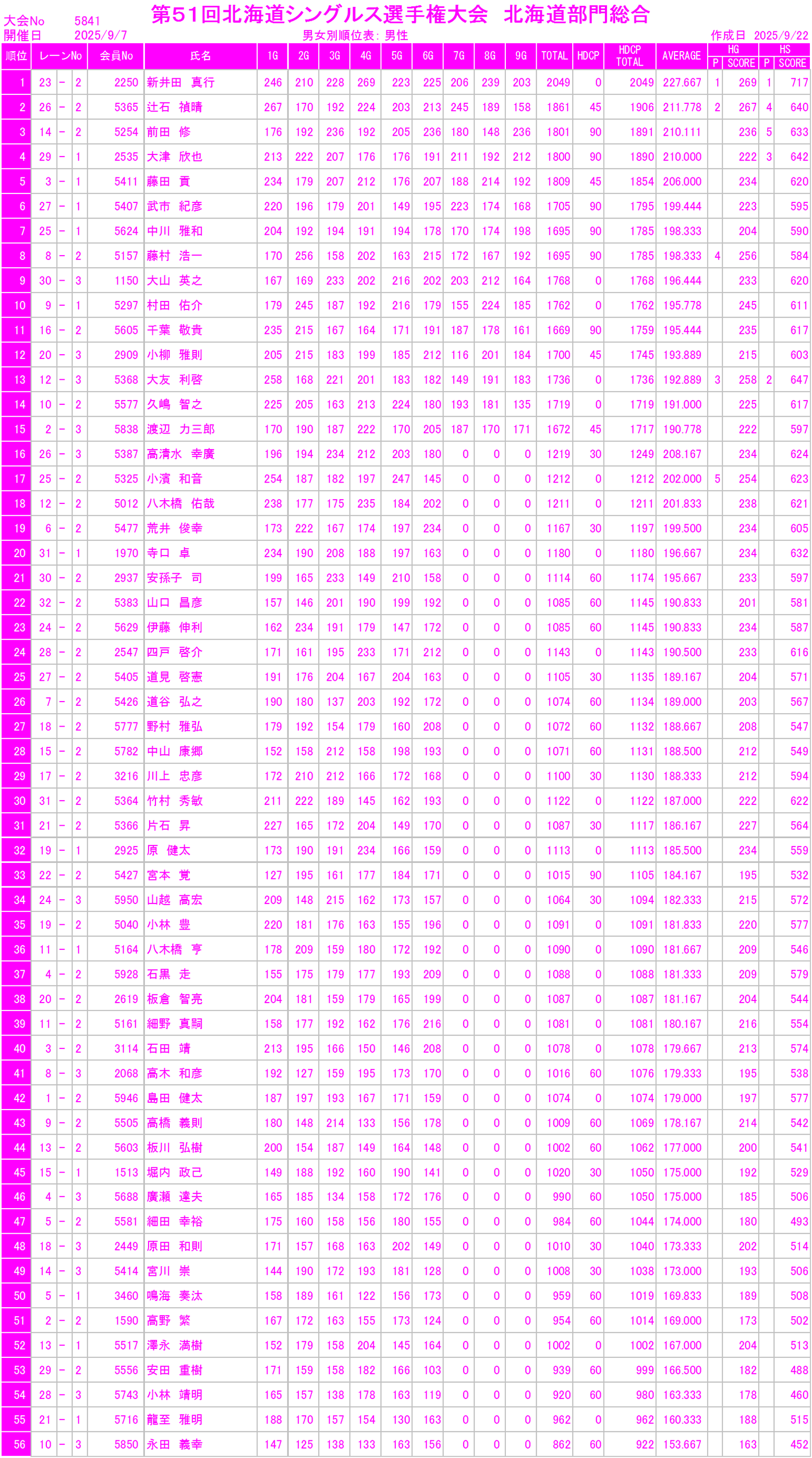 | 優 勝 | 中西(勇)・金井(直)・新井田チーム | 3768P |