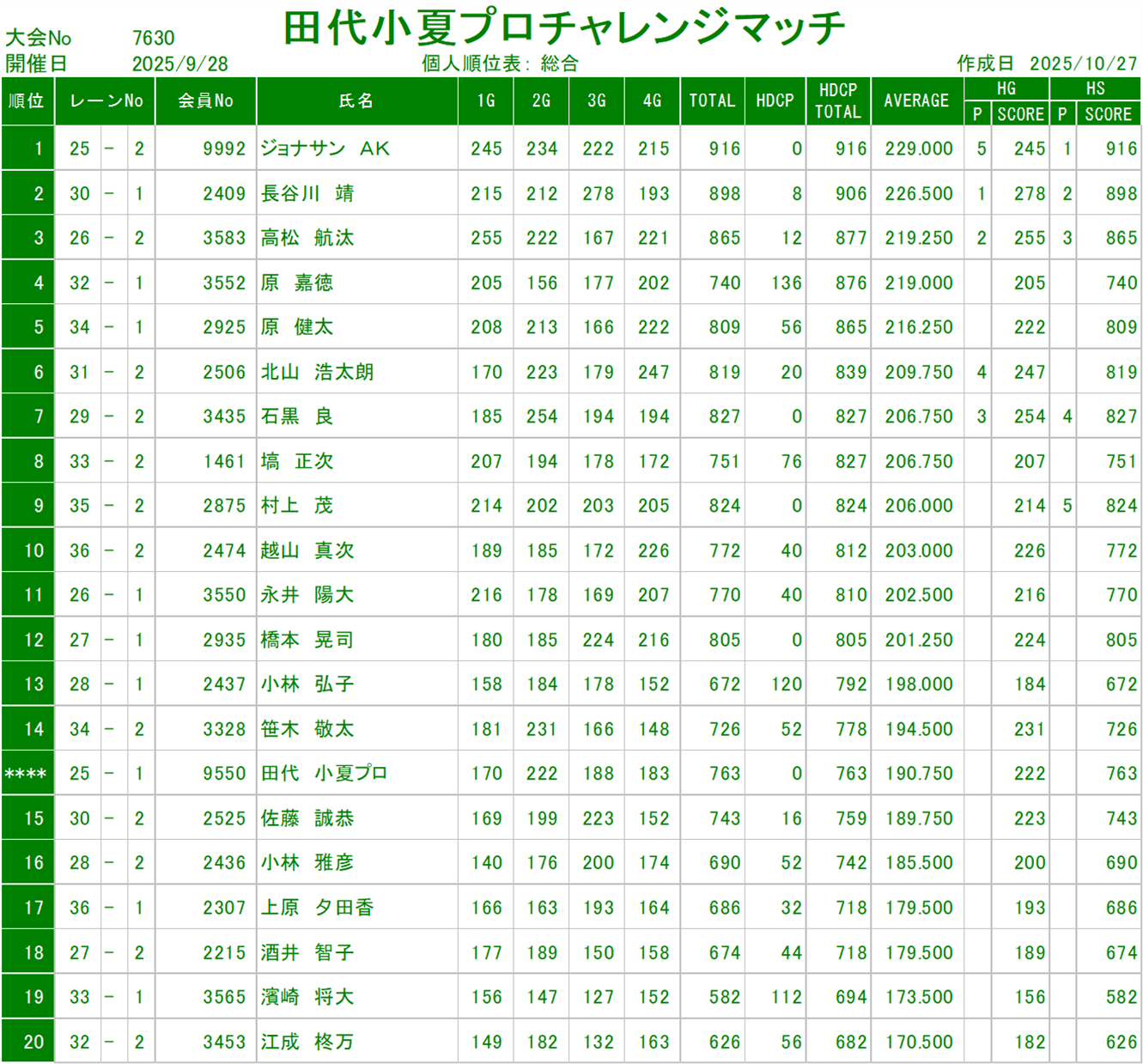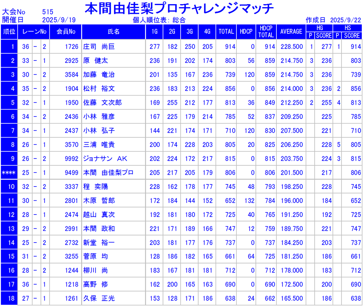 | コメント | 予選はストライク賞がいっぱい!準決勝マッチゲーム!決勝は白熱のスカッチ戦! | |